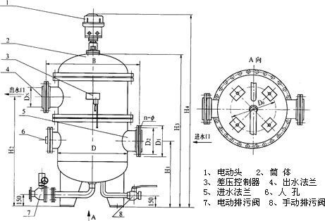 注:①本过滤器的连接法兰,一般按JB/T81-94PN1.0MPa设计制造,用户如需其它标准和规格的连接法兰,或相关尺寸及排污阀方向等需变更时,请在订货时说明。