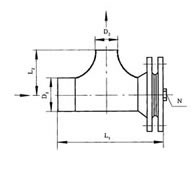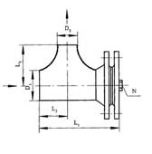 12、 T型异径对焊连接式过滤器(SBY IV D型)见图12、表12(DN50×40~300×250,PN≤10.0MPa)